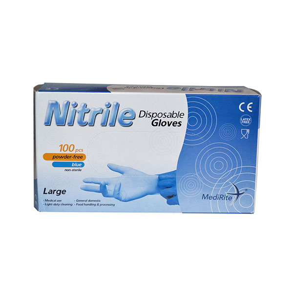Medirite Nitrile Powder-Free Gloves – Blue, Large (10 Boxes of 100)